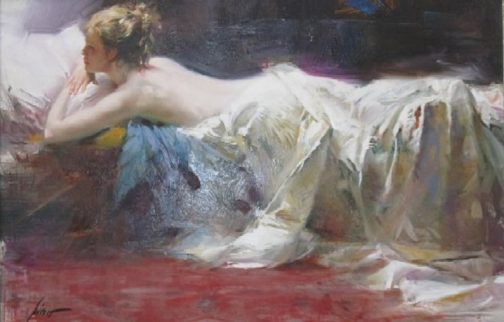 I find Pino’s women lovable because of their expression rather than their partial nudity. All beautiful bodies look the same, but every beautiful face is unique.