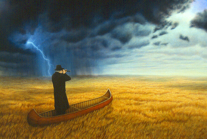 On a rainy summer evening she was struck by lightning. She dropped the umbrella and fell on the glassy street unconscious.