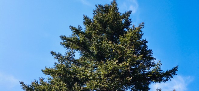 Bare sky where the great fir once stood— quiet after the storm.